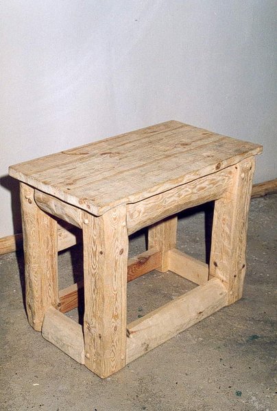 Masywny,ciosany taboret lub stolik w stylu country.W całości z litego drewna.