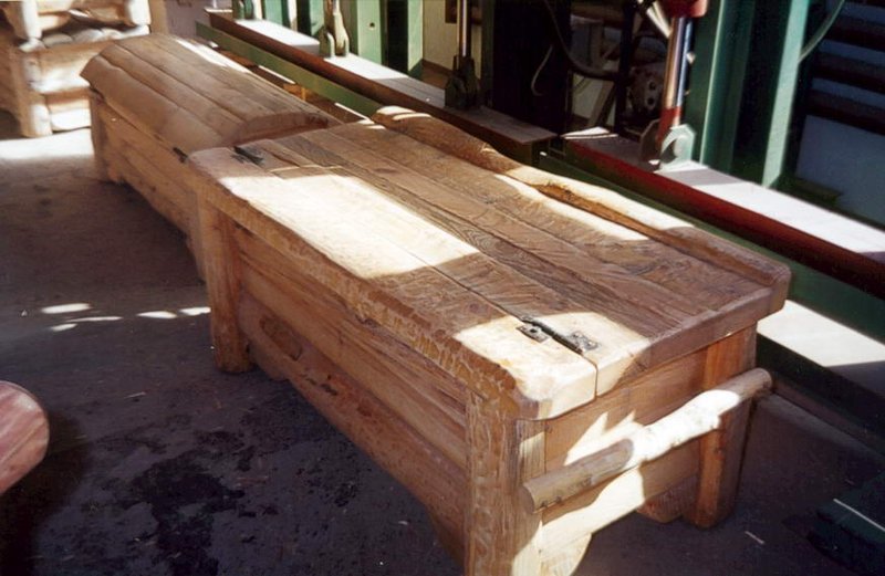 Masywne otwierane kufry.Ciosane,z litego drewna .Bardzo praktyczne.Projekt i wykonanie autorskie.Idealna do ogrodu,domu,karczmy,domku weekendowego,letniskowego.