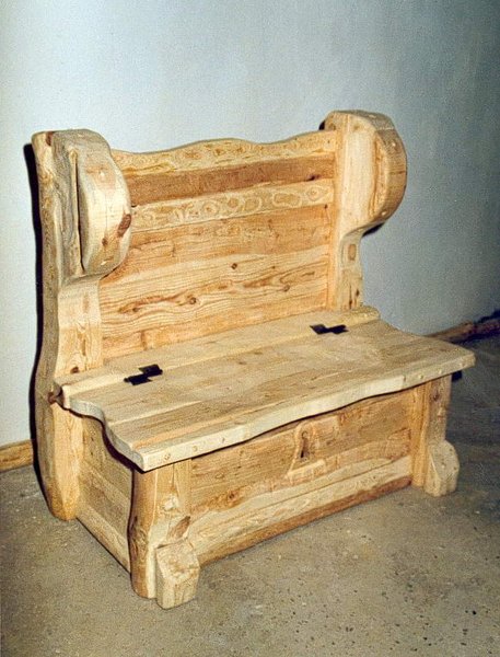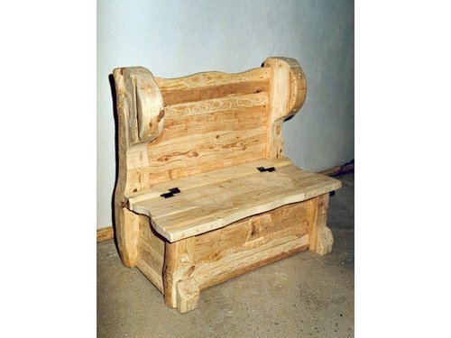 Masywny,solidny,otwierany kufer .z oparciem.Ciosany,z litego drewna.Projekt i wykonanie autorskie.