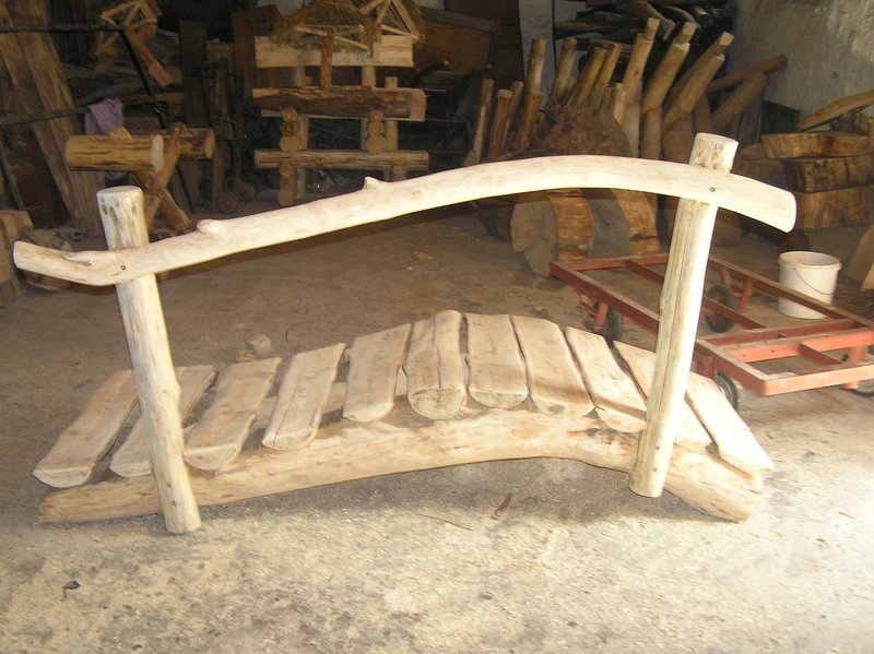 Oryginalny mostek ogrodowy.Drewniany,z półbala i okrąglaków.Przyciągający uwagę.