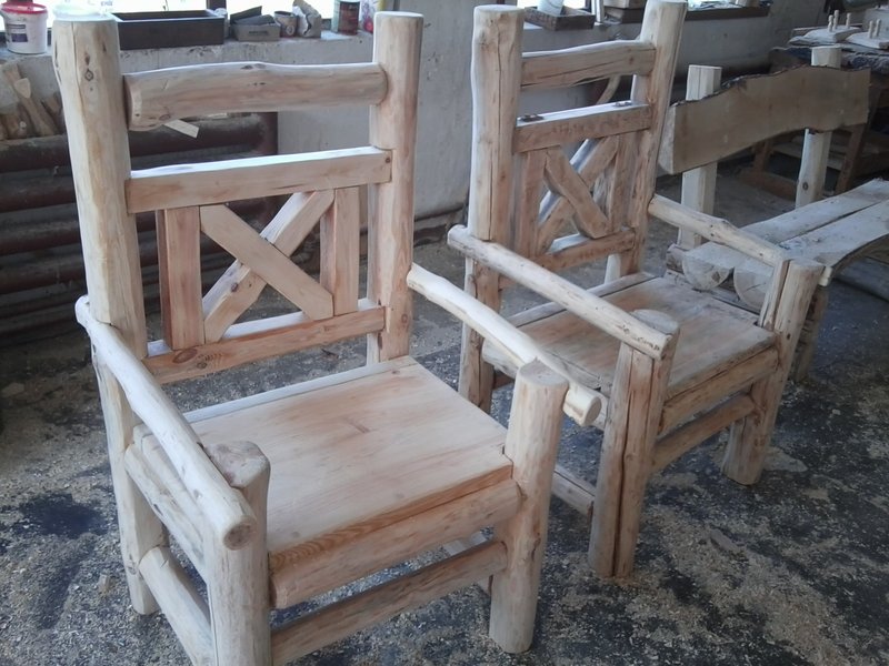 Drewniane krzesła w stylu country,ludowym.Wykonane z okrąglaków.Projekt i wykonanie autorskie.