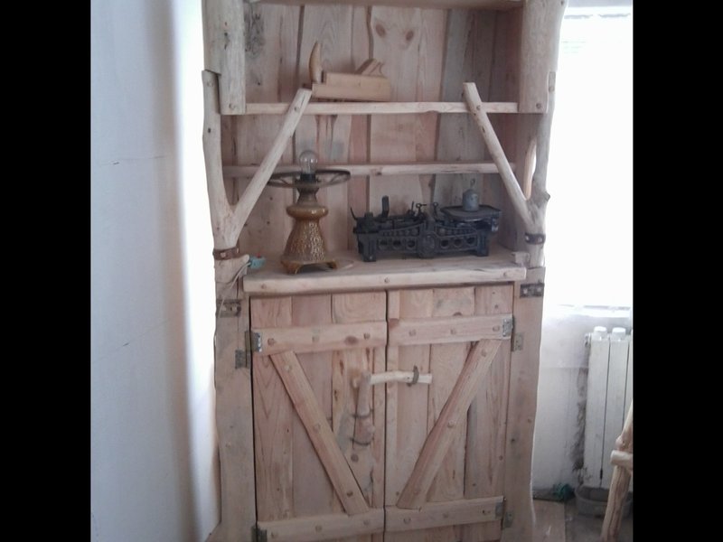 Kredens z litego drewna.Sosnowy,ciosany.Projekt i wykonanie autorskie.Znakomicie nadaje się do domu,restaurcji,kawiarni,hotelu.Ozdoba każdego wnętrza.