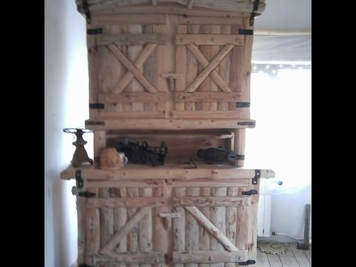 Kredensy ciosane z litego drewna,w stylu wiejskim,ludowym,country.Okucia wykonane ręcznie:skórzane lub metalowe.Projekt i wykonanie autorskie.Ozdoba każdego pomieszczenia.