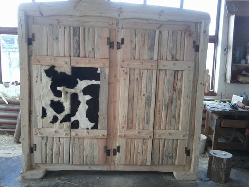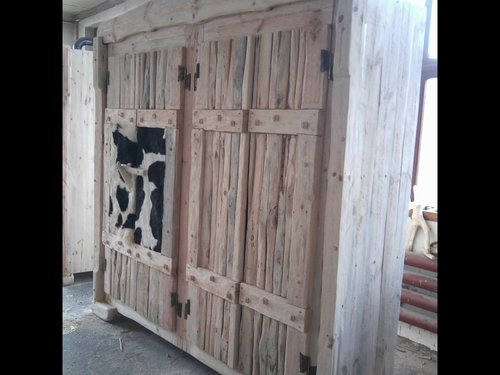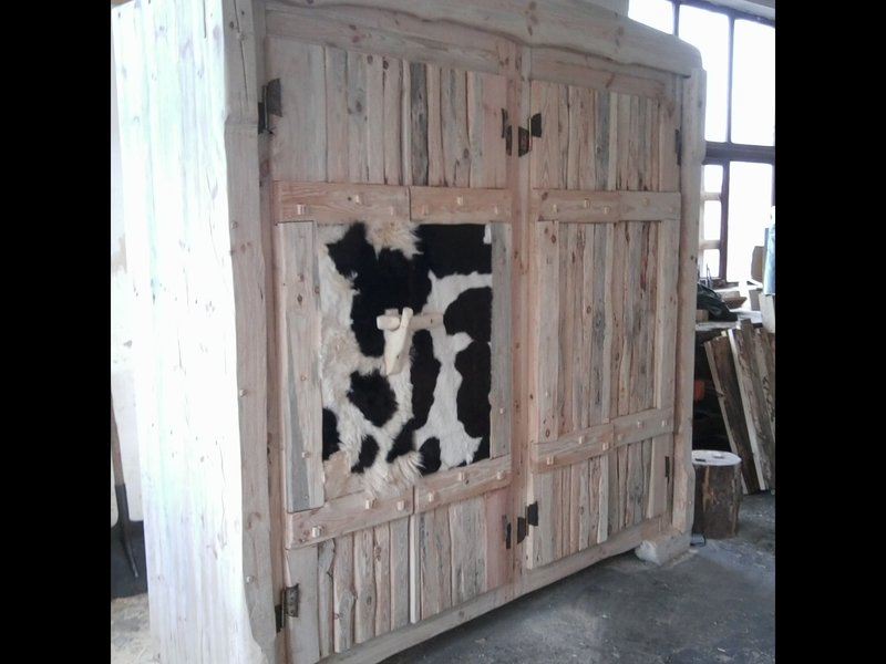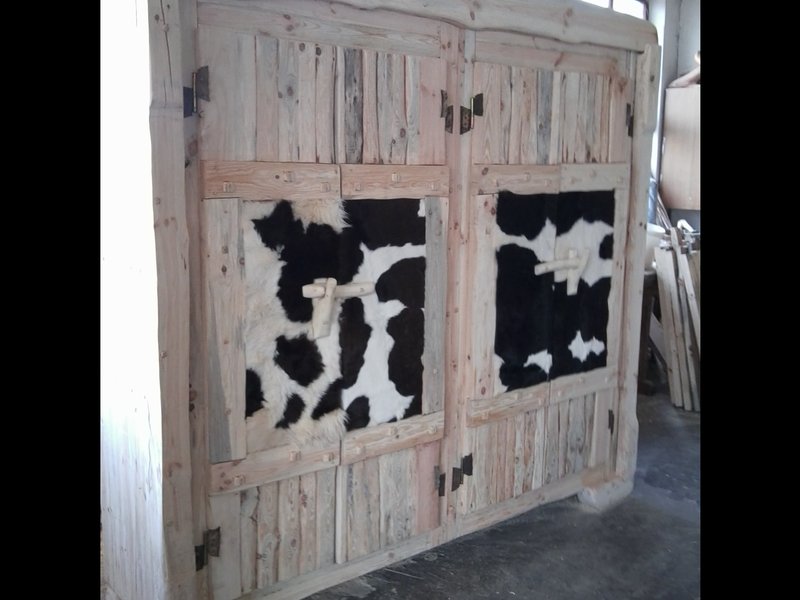 Na życzenie klienta na drzwiach ozdobiona skórami krowimi.