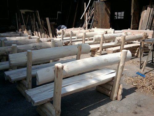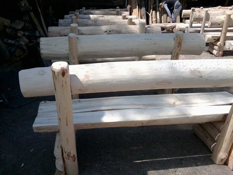 Ławki litego drewna z półbala,z oparciem.Nadają się zarówno do ogrodu jak i do restauracji karczmy,domku letniskowego.