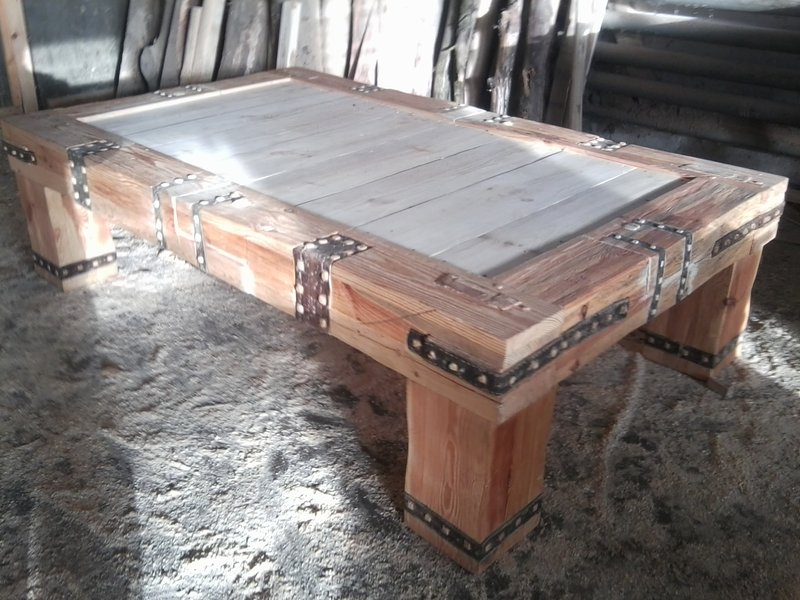 Wyjątkowy,nietypowy stół.Wykonany z dębu ,ze skórzanymi ozdobami.Ozdoba każdego wnętrza.