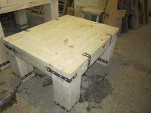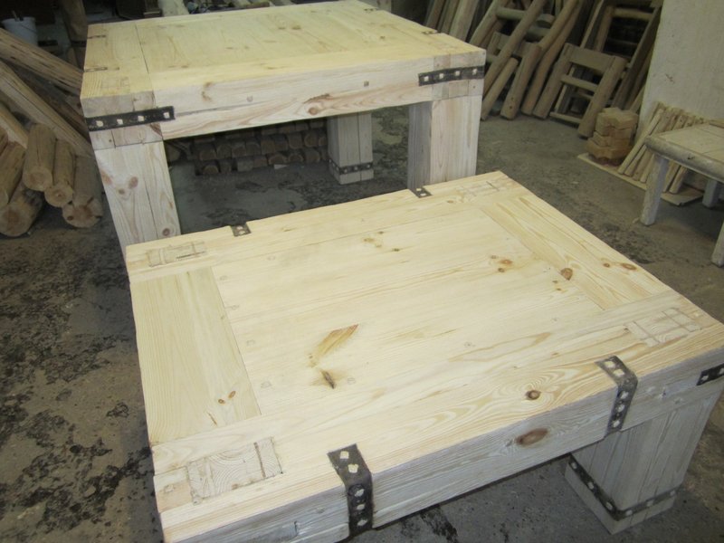 Stoły drewniane z litego drewna sosnowego .Posiadają ozdoby skórzane.Cena od 1800 zł