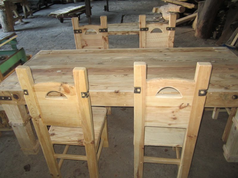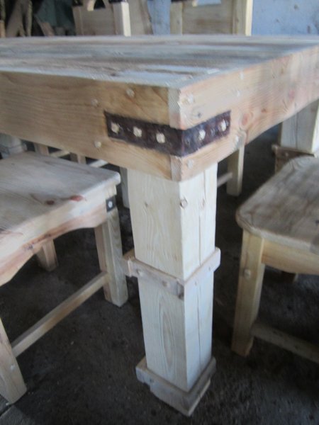 Wymiary stołu 205 cm x 90 cm wysokość 75 cm.Posiada ozdoby skórzane.Wykonany ze starej sosny.