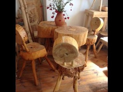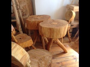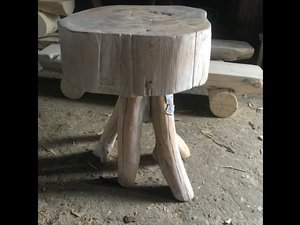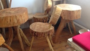 Stolik stworzony z pnia drzewa.