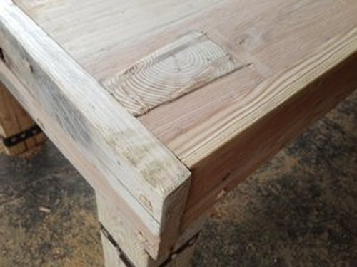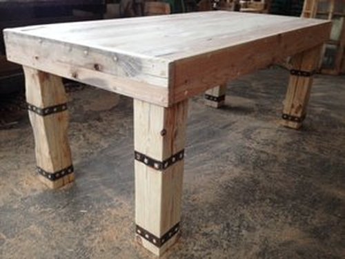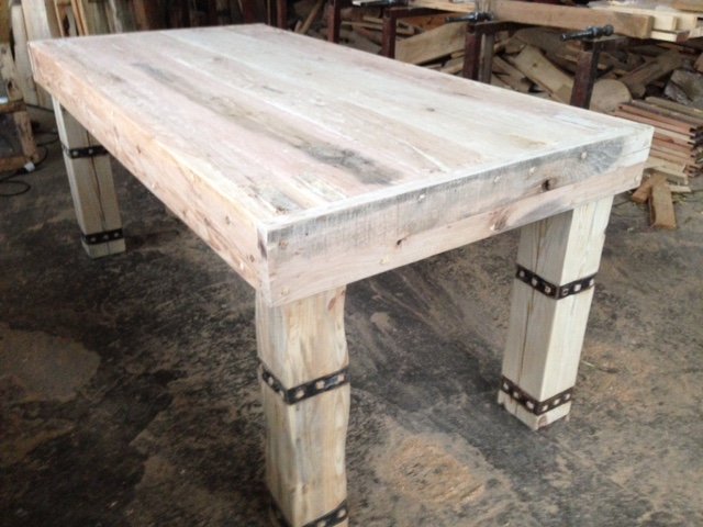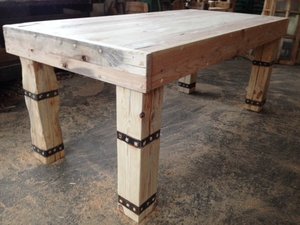 Stół z litego drewna z łączonych gatunków:sosny,modrzewia,dębu,brzozy.