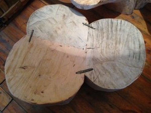 Stoik z trzech pni połączonych metalowymi ,ręcznie kutymi kotwami.Wysokość 35 cm